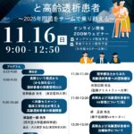 2025年10月18日 / 最終更新日時 : 2025年10月20日 情報委員 代謝 東京都臨床工学技士会 代謝セミナー 主催:東京都臨床工学技士会 学術委員会 代謝専門部会タイトル:「多職種で支える長期透析患者と高齢透析患者~2025年問題をチームで乗り越える~」開催日時:11月16日(日)9時~12時50分参加費:・東京都臨床工学技士会 […]