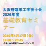 2026年1月11日 / 最終更新日時 : 2026年1月13日 情報委員 お知らせ代謝大臨工 勉強会・セミナー 第7回血液浄化webセミナーのご案内 2026年 2月 24日(火)19:00- 入室開始 形態:Web (Zoom ウエビナー) 費用:大阪府技士会会員:500円 非会員:1000円 学生:無料