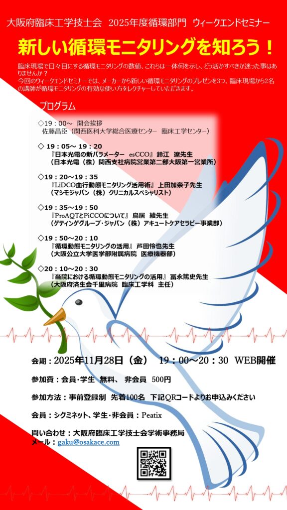 大阪府臨床工学技士会 循環器部門のウィークエンドセミナーのご案内です。