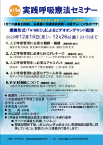 2025年11月12日 / 最終更新日時 : 2025年11月12日 管理者 お知らせ代謝大臨工 勉強会・セミナー 第26回 血液浄化セミナー FacebookXBlueskyHatenaCopy Screenshot 申し込みはこちら 会員 申し込みはこちら 非会員 申し込みはこちら 学生 申し込みはしばらくお待ちくだい 今回は血液浄化に関わる応用編となります. 更に詳しく学びたい方にオススメとなりますので,皆様のご参加を心よりお待ちしております。 会員:2000円 非会員:3000円 学生:1000円