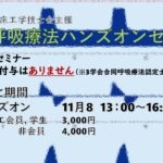 2023年7月30日 / 最終更新日時 : 2023年9月13日 情報委員 お知らせ大臨工 勉強会・セミナー呼吸 第11回 実践呼吸療法セミナー 講義形式:『VIMEO』によるビデオオンデマンド配信 2023年 11 月 13 日(月)~ 11 月 27 日 (月) 23:59まで 3学会合同呼吸療法認定士更新ポイント25点取得可 (全ての講義を視聴し、各講義の受講確認試験へ回答することが条件です)